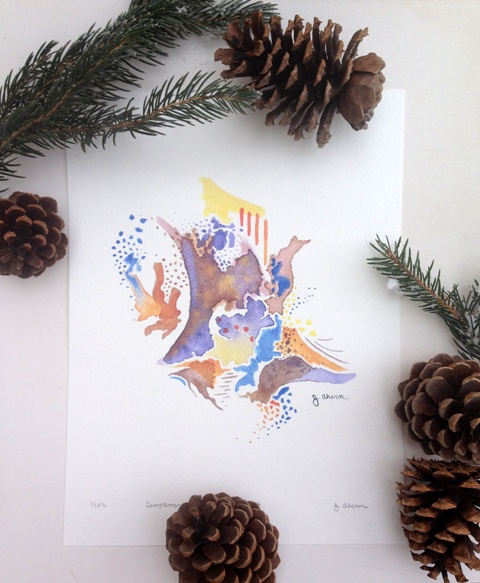 Art Giveaway Watercolor PrintJennifer doesn’t just do abstract art-she has a wide range of watercolor prints, all reproduced on top-of-the-line Hahnemule acid-free rag paper from Germany. The paper is remarkably similar in thickness and texture to watercolor paper, making the prints look like originals! The winner of the giveaway will receive their choice of 8 1/2 by 11 inch print from Jennifer’s Etsy shop. Here’s another example of her work that I love. If you’re looking to give art for a gift this holiday season, her shop really has something for everyone from kids to discerning art critic adults!