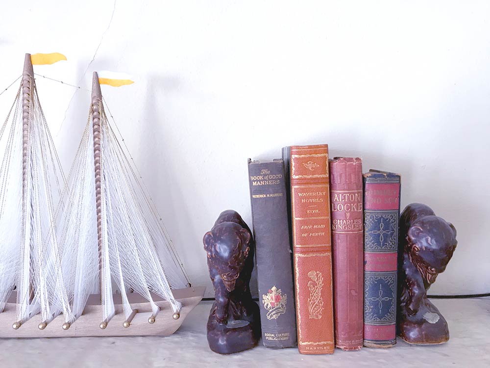 I gravitated to the shelves of old, vintage and antique books. I started collecting them not for the content (I haven’t even read one yet) but for their visual value. The leather covers, torn and stained. The imprinted letters of the titles and the rough, uneven cut of the discolored pages. Each book is one of a kind, not something that can be ordered on Amazon. Each copy of one of these books could be the last ever in existence, you never know.