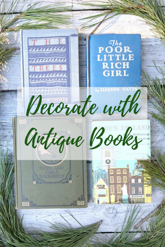 These books can be used as a display item, on a mantle or coffee table. They’re more than just books-they’re a little piece of the past. Plus it makes you seem highly cultured to have some distinguished volumes on the shelf to balance out those copies of Bergdorf Blondes and The 4-Hour Body or even How to Build a Car. Not that those are real titles I just saw on the shelf or anything. Hm. Moving on, here are some displayed on the mantle above the fireplace. Right now, the heavy volumes are actually playing a nice role holding up Christmas stockings.