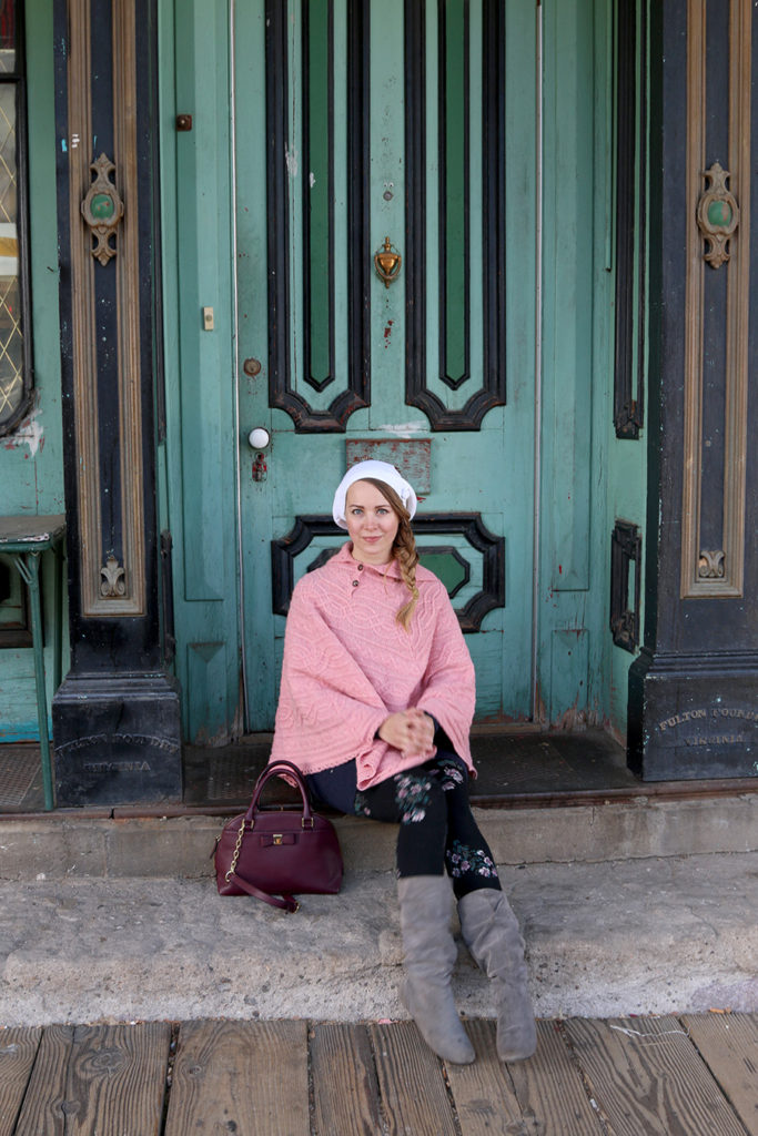 To visit Virginia City, I wore a wool cape that I’d just found at the Goodwill Outlet in Reno for $9! I hadn’t been to a Goodwill since I got this skirt for Tech Fashion Week, but the store provided for me once again-this time to keep me warm in the chilly mountain air.