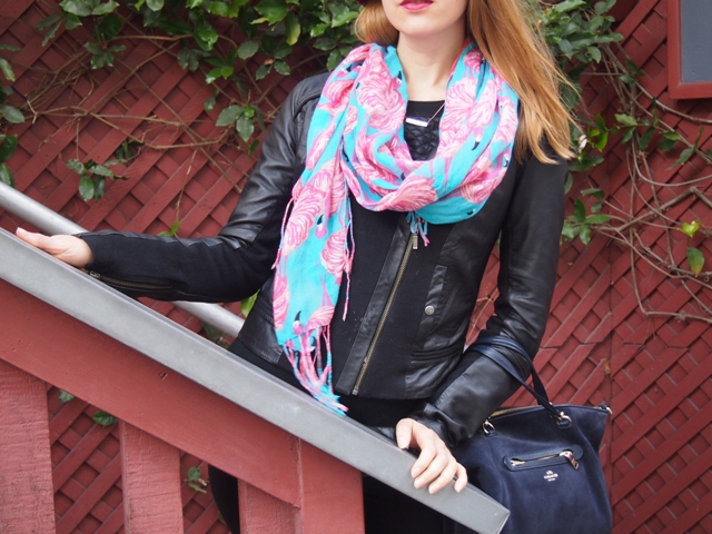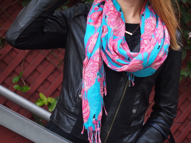 Downtown is almost always windy and chilly, so I like a lightweight scarf and a hat.